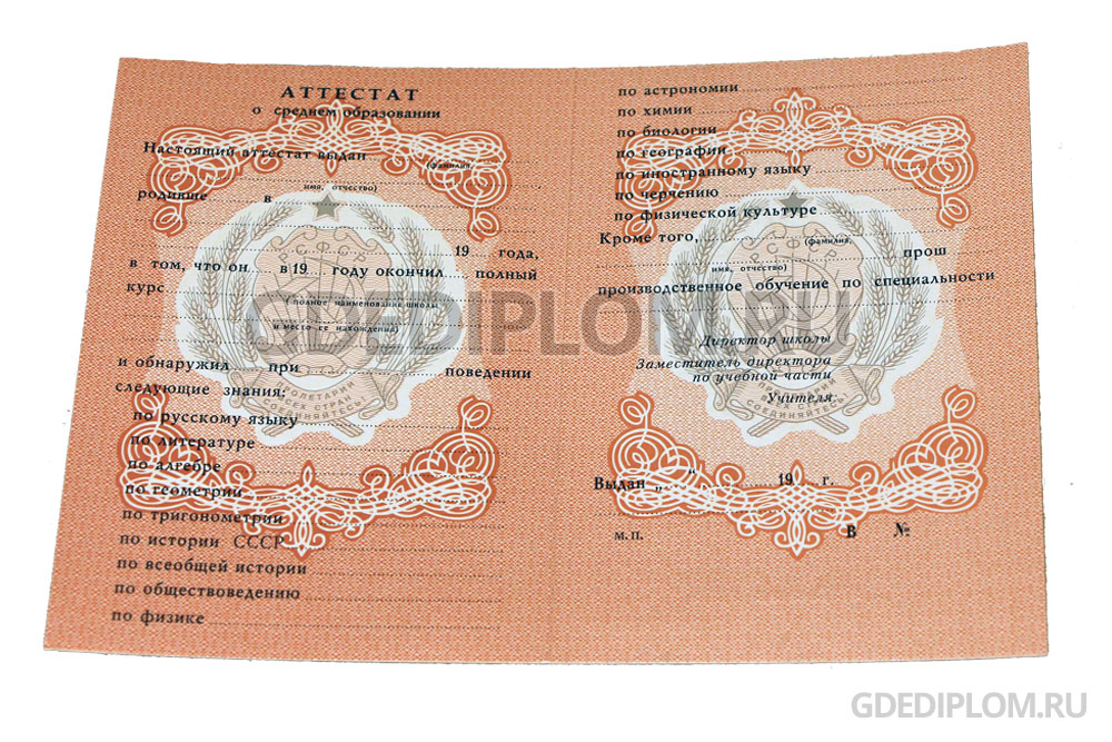 Аттестат СССР до 1996 года